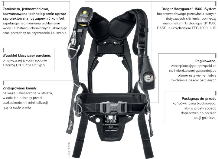 Drager PSS 4000 to jednoczęściowa uprząż zapewniająca wygodę i zapobiegająca nadmiernemu wchłanianiu wody i substancji chemicznych. W jego budowie zostały zastosowane wysokiej klasy parciane pasy aramidowe o najwyższej jakości (zgodnie z normą EN 137:2006 typ 2).