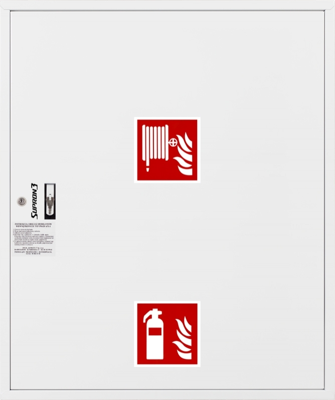 Hydrant wewnętrzny-wnękowy z wężem półsztywnym 25mm o długości 20mb z miejscem na gaśnicę pod zwijadłem.