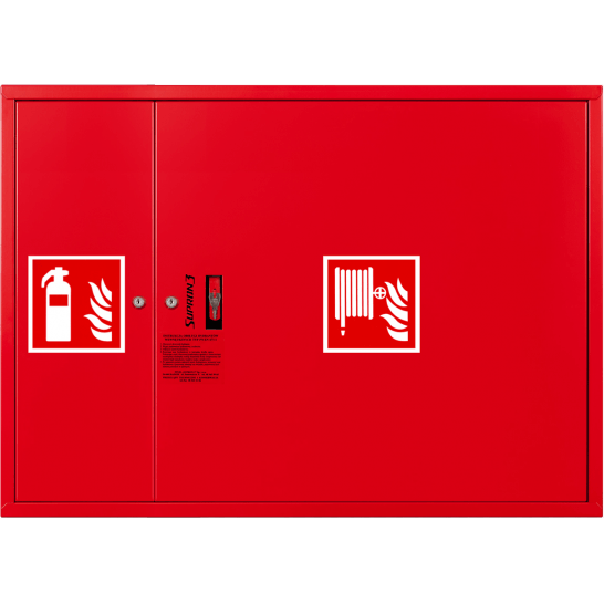Hydrant wewnętrzny WNĘKOWY z wężem płaskoskładanym 52mm o długości 15m nawiniętym na zwijadle z miejscem na gaśnicę 6kg z boku.