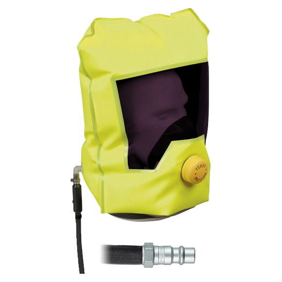 Kaptur ewakuacyjny do zadań ewakuacyjnych. Kaptur może być dodatkowym wyposażeniem aparatu oddechowego lub torby RIT.