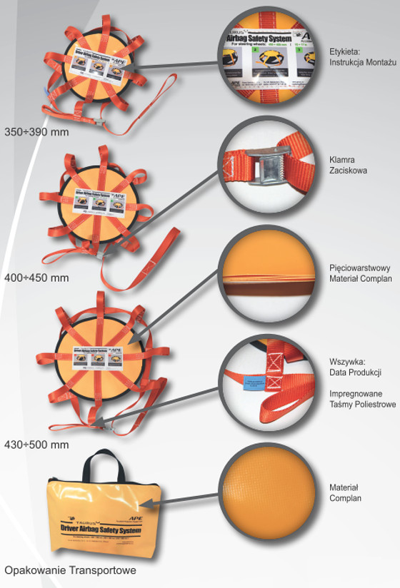 Proponowany zestaw AIRBAG 3 - składa się z 3 zabezpieczeń na poduszkę powietrzną kierowcy