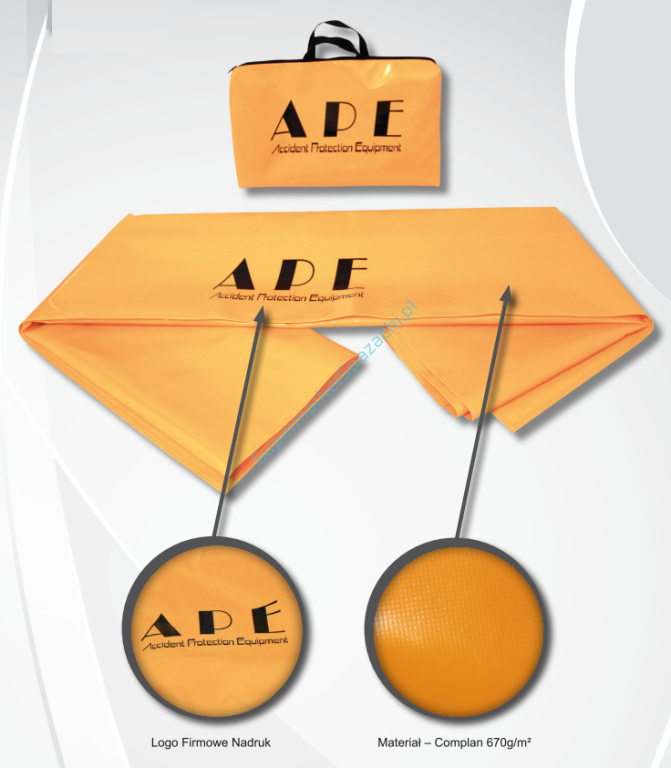Produkt po rozłożeniu na gruncie służy do zabezpieczenia narzędzi ratowniczych przed piaskiem, wodą, zabrudzeniami technicznymi. Plandekę można również stosować do osłaniania przestrzeni roboczej, wraków, narzędzi itp.