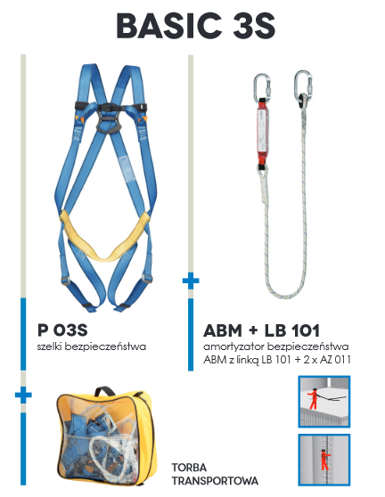 Polecamy zestaw asekuracyjny BASIC 3S firmy PROTEKTOR- przeznaczony do asekuracji jednej osoby, składający się z: szelek bezpieczeństwa , amortyzatora i linki asekuracyjnej z zatrzaśnikami oraz torby transportowej. Oferowany zestaw przygotowany do prac wykonywanych na wysokości ,chroni człowieka przed upadkiem z wysokości jest kompletny zgodny z normą EN 355. Polecamy do prac w przemyśle oraz budownictwie oraz wszędzie gdzie jest potrzebne zabezpieczenie pracownika przed upadkiem z wysokości