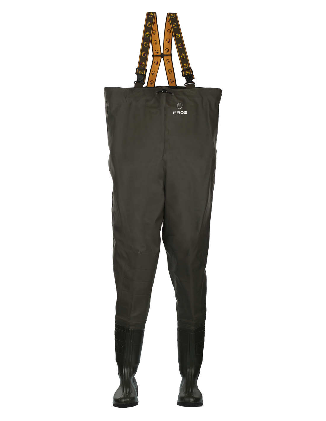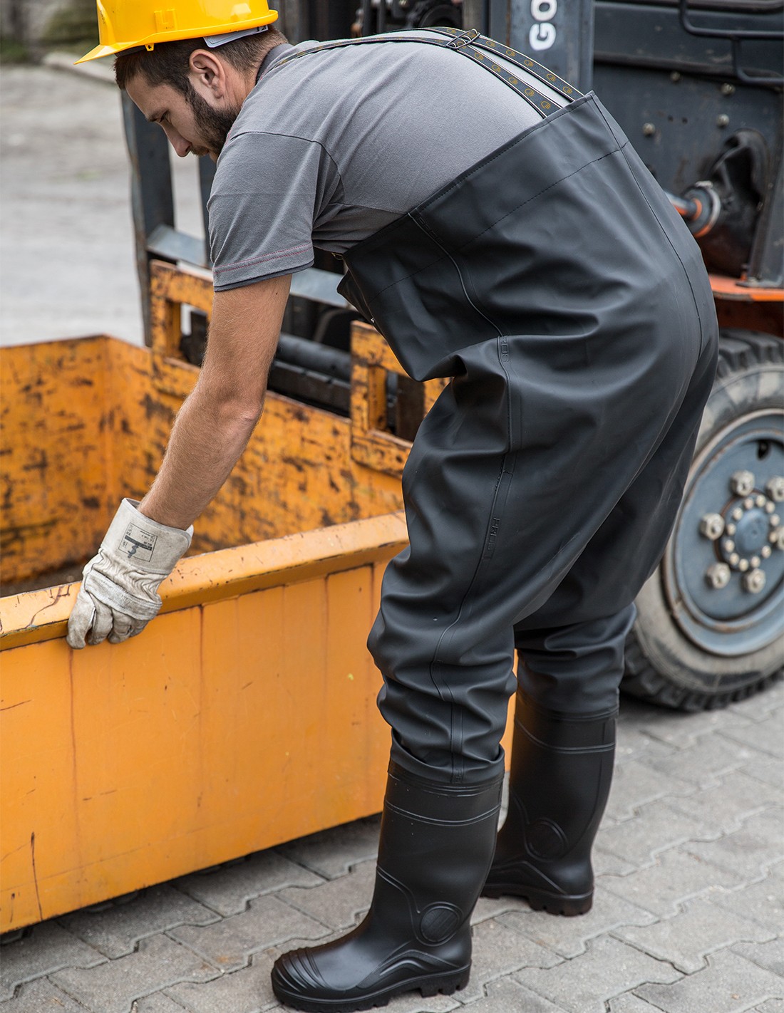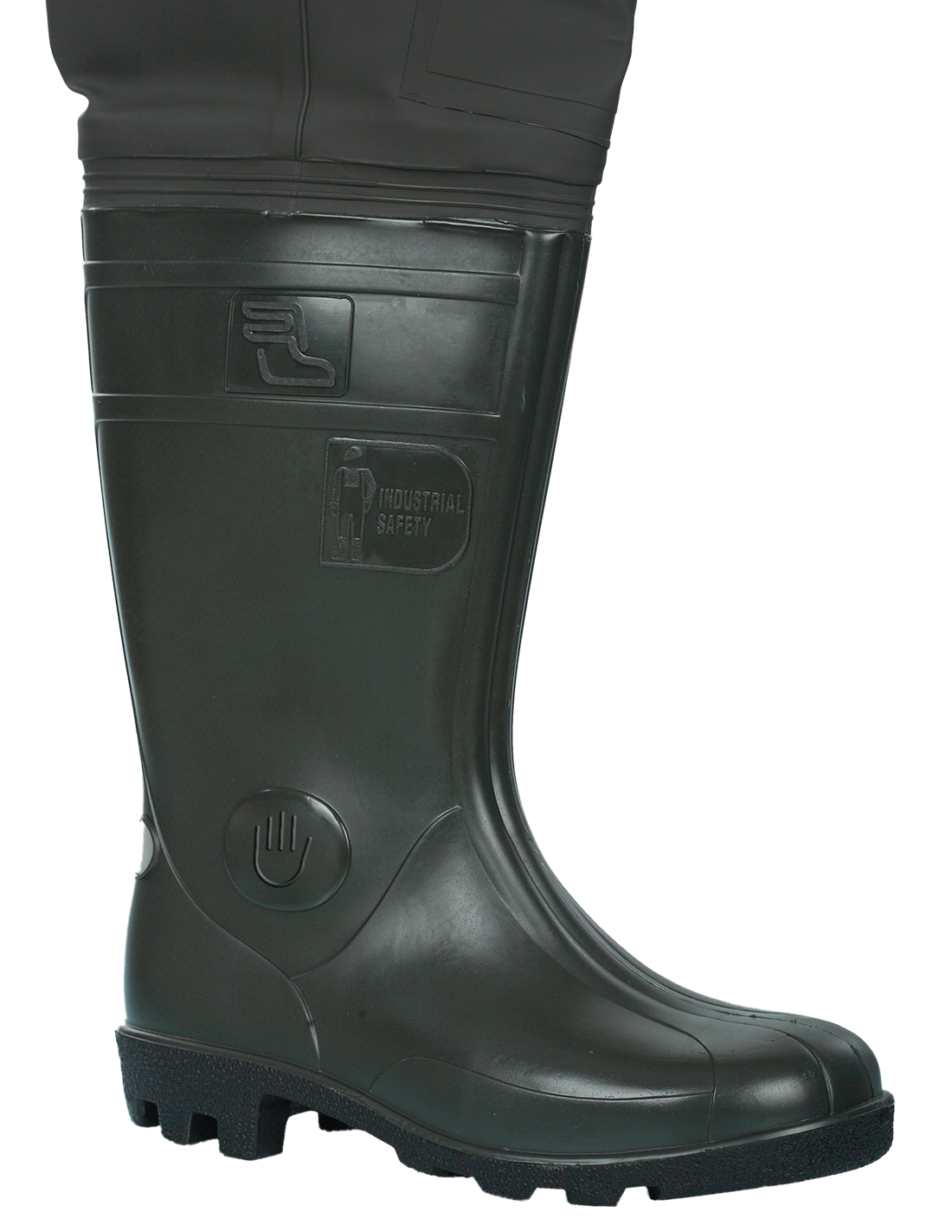 Spodniobuty wodochronne o podwyższonej odporności na uszkodzenia mechaniczne, z wgrzanymi na stałe, wysokiej jakości kaloszami.