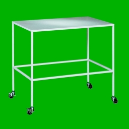Stolik chirurgiczny STL 101 wykonany został z solidnej blachy o grubości 0,8 mm oraz z profili metalowych. Stolik posiada blat o obszernej przestrzeni roboczej, umożliwiając przechowywanie dużej ilości aparatury oraz przyrządów medycznych. Prezentowany model posiada stelaż z prostokątną ramą oraz kółka skrętne, z których dwa wyposażone zostały w blokadę, uniemożliwiające niepożądane przesuwanie stolika. Stolik chirurgiczny STL 101 malowany jest proszkowo na wszystkie 15 kolorów palety Ral. Technologia ta gwarantuje podwyższoną odporność produktu na działanie agresywnego środowiska korozyjnego.