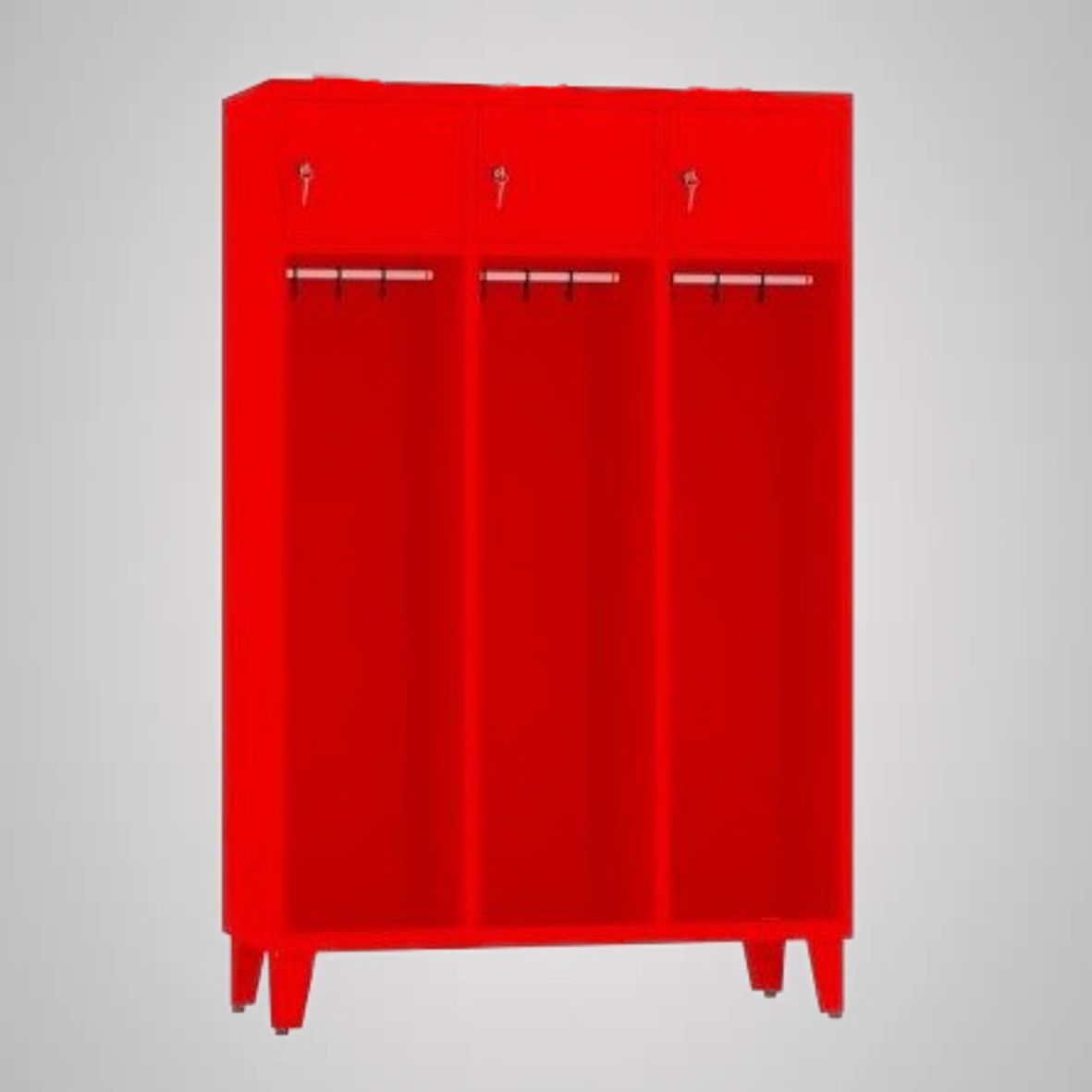 STRN400/3b-Profesjonalna szafa ubraniowa na nóżkach z regulacją dzięki łatwiej pod nią posprzątać i wypoziomować stosowana do wymagań zarówno jednostek Państwowych Straży Pożarnych jak i Ochotniczy Straży Pożarnych. Korzystając z nich możemy w wygodny, łatwy a zarazem bezpieczny sposób przechowywać odzież specjalną, ubrania koszarowe, hełmy, a także rzeczy, które pragniemy zostawić w remizie podczas wyjazdu do zdarzenia.