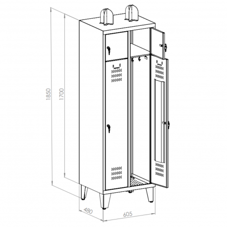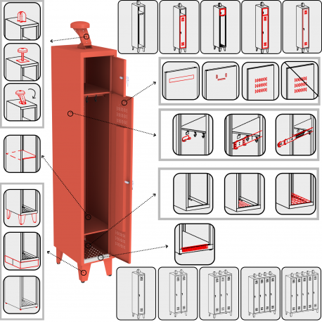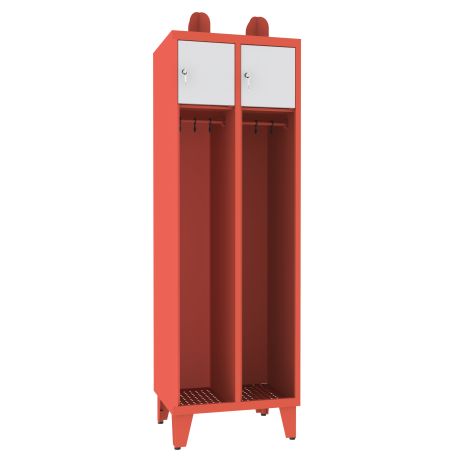 Profesjonalna szafa ubraniowa na nóżkach z regulacją dzięki łatwiej pod nią posprzątać i wypoziomować z uchwytem na Hełm dostosowana do wymagań zarówno jednostek Państwowych Straży Pożarnych jak i Ochotniczy Straży Pożarnych. Korzystając z nich możemy w wygodny, łatwy a zarazem bezpieczny sposób przechowywać odzież specjalną, ubrania koszarowe, hełmy, a także rzeczy, które pragniemy zostawić w remizie podczas wyjazdu do zdarzenia.