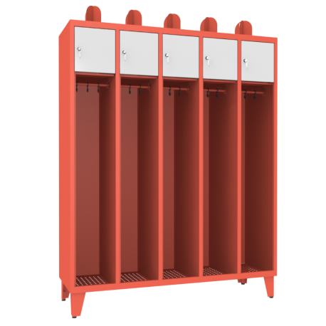 Profesjonalna szafa ubraniowa na nóżkach z regulacją dzięki łatwiej pod nią posprzątać i wypoziomować z uchwytem na Hełm dostosowana do wymagań zarówno jednostek Państwowych Straży Pożarnych jak i Ochotniczy Straży Pożarnych. Korzystając z nich możemy w wygodny, łatwy a zarazem bezpieczny sposób przechowywać odzież specjalną, ubrania koszarowe, hełmy, a także rzeczy, które pragniemy zostawić w remizie podczas wyjazdu do zdarzenia.