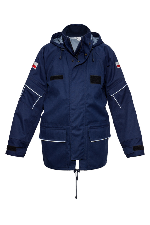 Ten zestaw kombinezonu składa się z oddzielnej kurtki przeciwdeszczowej oraz spodni mocowanych na szelki – co daje elastyczność i możliwość szybkiego dostosowania do warunków akcji. Materiały oraz konstrukcja zostały dobrane tak, by skutecznie odprowadzać wodę z zewnątrz, a także utrzymywać komfort podczas wielogodzinnej pracy w terenie. Szelki umożliwiają lepsze dopasowanie spodni, a oddzielna kurtka łatwiejsze zdejmowanie lub zmiany warstwy w zależności od pogody.